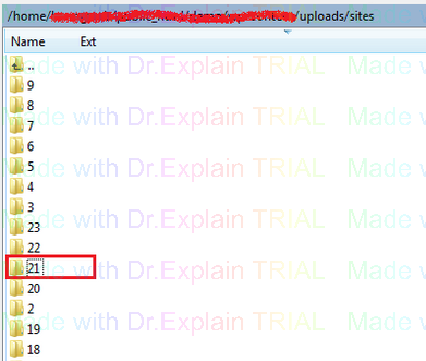 Lấy tất cả các thư mục trong folder của site bạn muốn di chuyển, ví dụ ở hình trên site có ID=21.