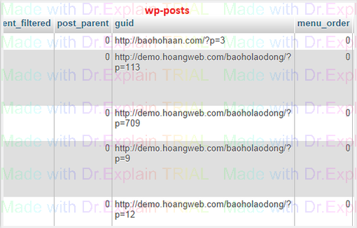 guid (tìm thay thế địa chỉ domain trang chủ/base url)