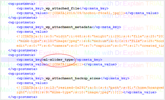 Mỗi record trong wp_posts thể hiện bởi tag item. Sau mỗi tag item nhận dạng là ‘attachment’ bởi element tag wp:post_type
