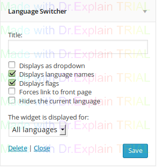 Sau khi kích hoạt plugin, bạn thêm hiển thị lựa chọn đa ngôn ngữ bằng cách sử dụng widget. PLugin tạo sẵn widget bạn kéo vào sidebar để thêm nút chọn ngôn ngữ trên website.