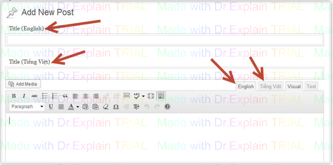 Trong phần sửa bài viết có nhiều mục nhập nội dung với từng ngôn ngữ.