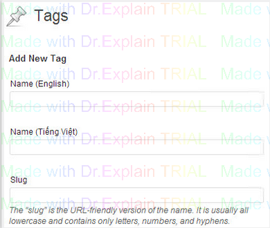 Đối với Tag và Category cũng như vậy, tuy nhiên phần slug thì cố định không thay đổi.