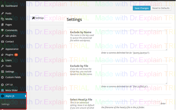 $args['opt_name'] = 'asyncjs'; #this is option name call by get_option('asyncjs ')