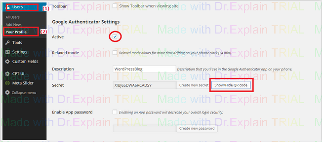 Trên wordpress site bạn cài đặt plugin Google Authenticator. Sau khi kích hoạt bạn tiến hành cấu hình: