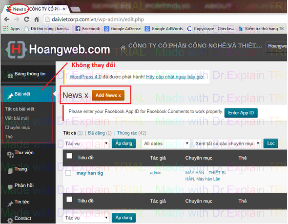 Một ví dụ khác sửa cài đặt mặc định của kiểu 'post'. Tuy nhiên không hoàn toàn, một số thành phần khác được hook khác quản lý. Nếu muôn sửa toàn diện bạn cần kết hợp các hooks với nhau. Chẳng hạn sửa được nhãn hiển thị của kiểu post.