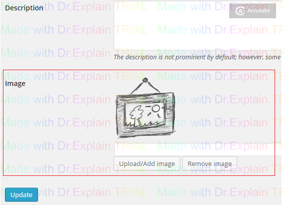 Có 2 cách bạn có thể thêm ảnh đại diện cho danh mục, thêm một trường nhập ảnh vào từng trang sửa danh mục như thế này.